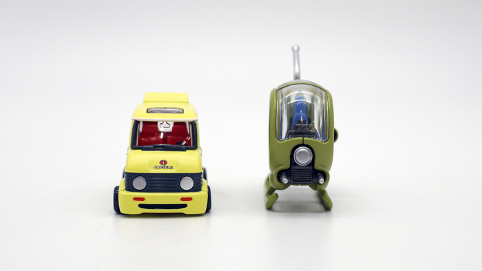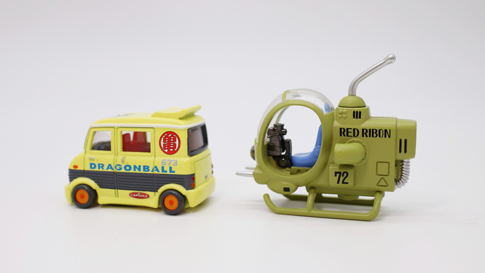 Le Van de Kamesennin et le Petit Avion de l'Armée du Ruban Rouge sont arrivés à la rédaction du site officiel de Dragon Ball . Découvrons ces produits, suffisamment petits pour tenir dans un emballage de 8 cm sur 4 cm !