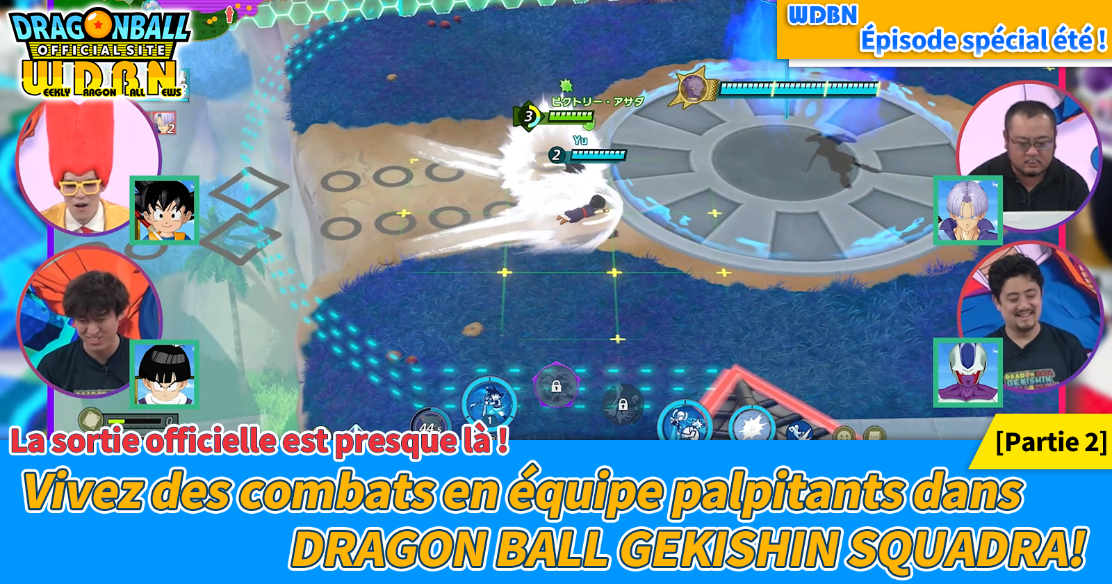 Victory Asada, rédactrice de « Dragon Ball» dans V Jump et Saikyo Jump, et Kawashima, rédacteur en chef de Saikyo Jump, ont pu découvrir le gameplay de GEKISHIN SQUADRA ! Aujourd'hui, nous reprenons là où nous nous étions arrêtés la semaine dernière avec l'édition spéciale des Nouvelles hebdomadaires Dragon Ball!