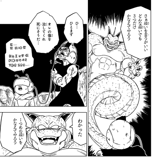 Saisissant Eska, un Namekian, ils invoquent Porunga, et Cranberry souhaite que ses blessures soient guéries.