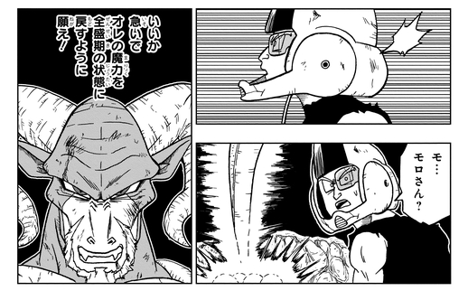 Grâce aux capacités impressionnantes de Moro, ils parviennent à rassembler six Dragon Balls en un rien de temps. Puis, tandis que Moro occupe le Great Supreme Kai au combat, il met la main sur la septième Dragon Ball.