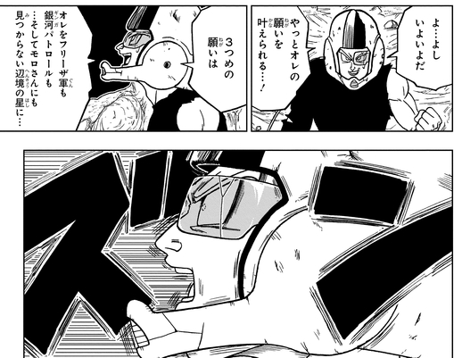 Cranberry contacte le méchant Moro, qui a détruit d'innombrables planètes 10 millions d'années plus tôt, et s'échappe de la Galactic Prison grâce à la magie de Moro. En échange de l'autorisation accordée à Moro d'utiliser l'un de ses vœux, Cranberry négocie un accord pour utiliser le troisième afin de s'échapper vers une planète lointaine où ni la Patrouille Galactique ni la Force Frieza ne pourront le retrouver.