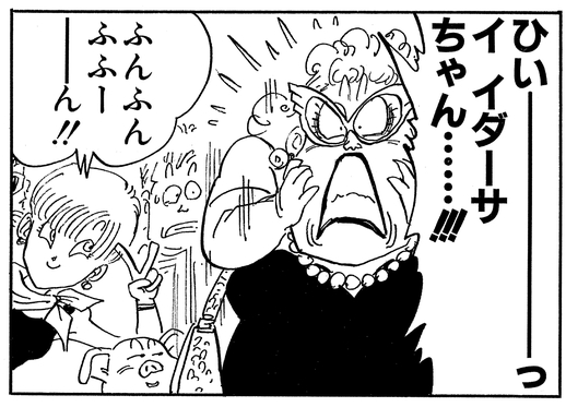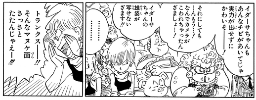 Depuis les tribunes, elle encourage son fils aîné Idasa et se moque de son adversaire Trunks en criant : « Il ne peut même pas se déchaîner contre ce bébé ! » Bulma n'est pas du genre à laisser passer ça et réplique : « Élimine ce crétin !!! »