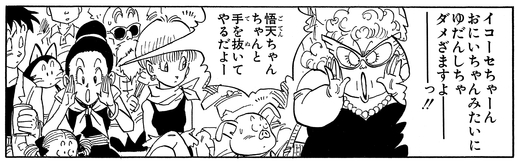 Elle ne perd pas de temps à l'encourager en criant : « Ne fais pas comme ton frère et ne baisse pas ta garde !! » Chichi, qui est à portée de voix, répond en appelant son propre fils : « Vas-y doucement avec lui, Goten !! » Cela met bien sûr en colère la mère Idasa et d'Ikose.