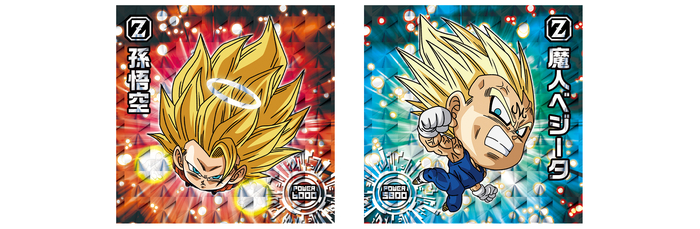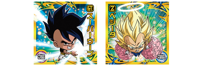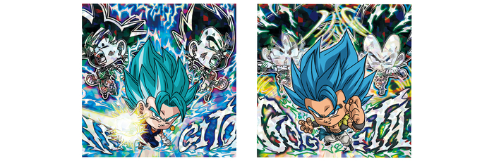 Les deux guerriers formés à partir de la puissance combinée de Goku et Vegeta sont ici sous la forme de superbes autocollants « Union Rare EX » !