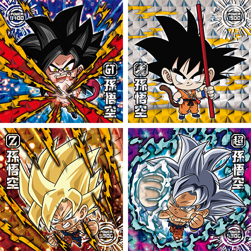 Il y a beaucoup d'autres autocollants sympas en plus des autocollants de la campagne! Vous pouvez obtenir différentes formes de Goku dans le brillant "Gold God Rare" ainsi que plus de vos combattants préférés montrant leurs mouvements dans "Attack Rare", qui présente une grande impression de leurs noms d'attaque! La gamme comprend également des autocollants représentant les scènes d'ouverture de l'anime télévisé "Dragon Ball GT" et des scènes célèbres du film "Dragon Ball Super: Broly"!