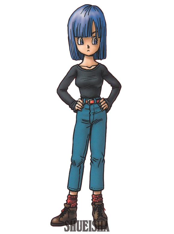 Voici Bulma, devenue mère durant l'arc narratif des Androïdes et de Cell . Sans surprise pour une personne aussi soucieuse de son style, sa tenue, bien que simple, témoigne de son attention aux détails, notamment par la longueur de son pantalon et son harmonie avec ses bottes.