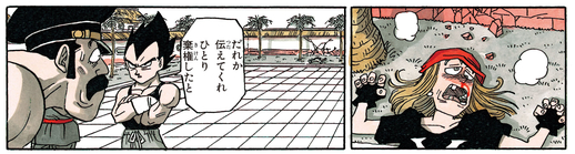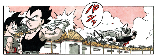 Fidèle à son style, Vegeta , après avoir mis KO son adversaire potentiel, lance aux combattants restants : « Dites-leur qu'il a abandonné. »