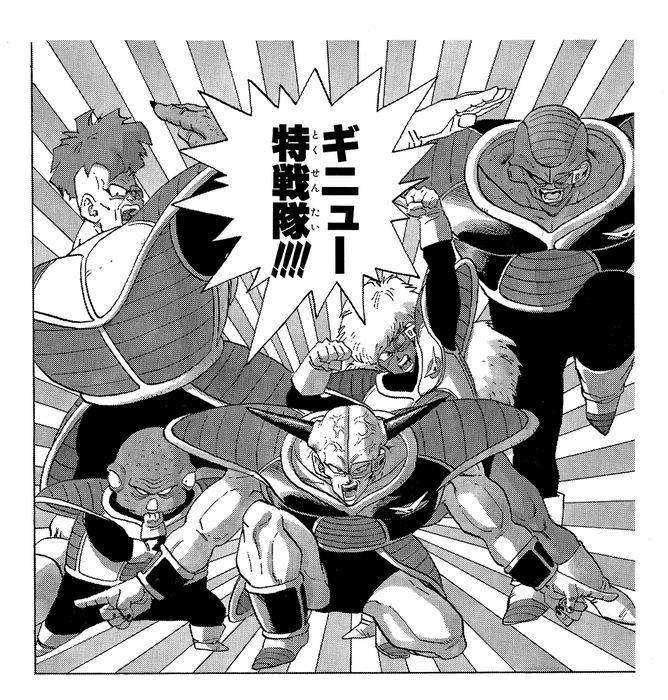 Bien que leur pose chorégraphiée à cinq et le fait qu'ils décident de l'ordre de combat par un jeu de pierre-feuille-ciseaux révèlent leur côté humoristique, la redoutable puissance du commando Ginyu est loin d'être une plaisanterie. Gohan et Krillin s'allient à Vegeta pour affronter le groupe, mais se retrouvent en mauvaise posture face à la force colossale de l'un de ses membres, Recoome.