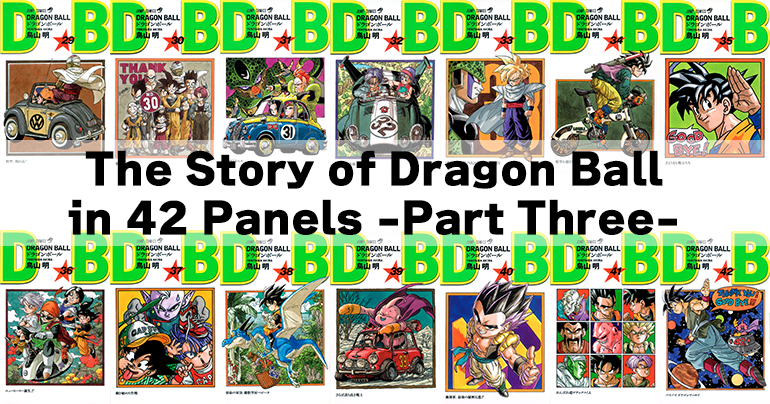 Cette série d'articles a débuté le 20 novembre, date anniversaire de la première publication de Dragon Ball. Nous y retraçons le parcours de Goku et de ses amis en sélectionnant une case de chacun des 42 volumes de Dragon Ball publiés dans le Jump Comics . Dans la première partie, nous avons couvert la période allant du départ de Goku pour sa grande aventure avec sa nouvelle amie Bulma jusqu'à sa victoire contre le Great Demon King Piccolo. La deuxième partie, quant à elle, relate la victoire de Goku, désormais adulte, au 23e Tenkaichi Budokai, jusqu'à son triomphe sur Frieza sur la Planet Namek.