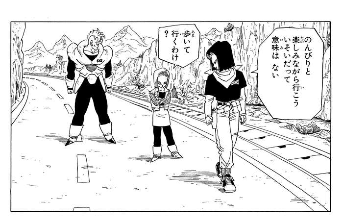 Sur le chemin de Goku, Android 17 choisit, de façon surprenante, un itinéraire moins direct. Cette scène révèle une facette étonnamment humaine de Android 17, un point que Android 18 commente plus tard. Pour contrer la menace androïde, Piccolo décide de fusionner avec Kami. Mais à leur insu, une créature monstrueuse venue du futur est arrivée et commence à s'agiter.