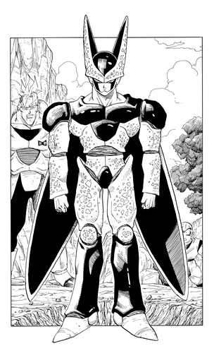 Après s'être entraîné dans la Room of Spirit and Time pour vaincre les androïdes, Vegeta domine Cell sous sa Second Form grâce à sa force. Cependant, provoqué par Cell, il cède à sa curiosité concernant la Perfect Form de l'androïde et accepte d'interrompre leur combat. Malgré les efforts de Trunks pour intervenir, Cell absorbe Android 18 et évolue vers sa Perfect Form. La case ci-dessous illustre la nouvelle et imposante apparence de Cell.