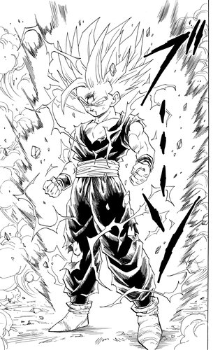 Sa véritable puissance désormais libérée, Gohan se transforme en Super Saiyan 2. À la vue d'un guerrier surpassant même la force de Goku, Cell est horrifié et déclare : « Il a… changé… » Gohan élimine d'abord les Cell Jr. qui perturbent ses compagnons avant d'affronter Cell une fois de plus.