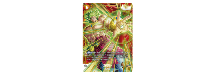 La version alternative de « Broly» présente une illustration spéciale illustrant sa force colossale lorsqu'il se dresse face à Gohan, Goten et leurs amis. Son pouvoir d'activation est tout aussi impressionnant ! Puissant et oppressant, il lui permet de sélectionner toutes les cartes de combat en mode repos dans la zone de combat adverse et de les empêcher de passer en mode actif jusqu'à la fin du prochain tour de votre adversaire.