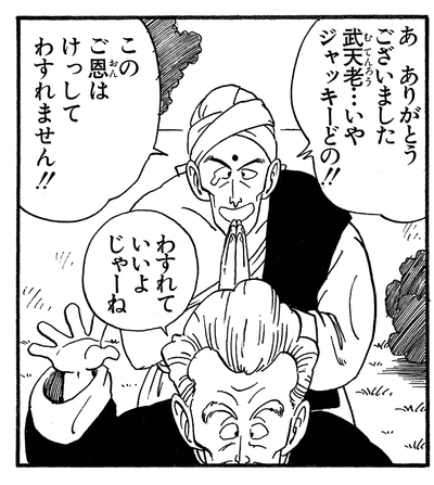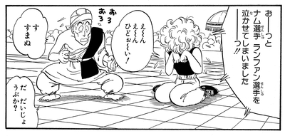 Après sa défaite, Namu a pensé qu'il devrait retourner dans son village les mains vides, mais Kamesennin (déguisé en Jackie Chun à l'époque) a pu sentir le sort de Namu et est intervenu ! Il lui a donné une Hoipoi Capsule qui pouvait être utilisée pour réduire une grande quantité d'eau de puits gratuite jusqu'à la taille d'un Senzu Bean à la maison - aucun "récipient débordant" lourd n'est requis !
