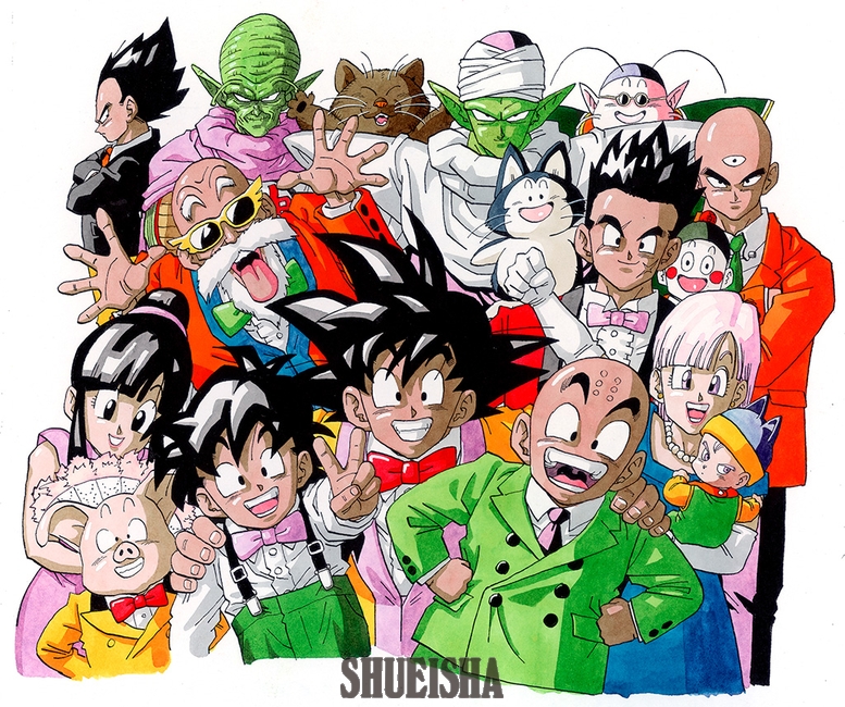 Cette illustration a été réalisée pour la couverture de ce numéro afin de célébrer le septième anniversaire de Dragon Ball. Elle déborde d'énergie et met en scène une multitude de personnages, dont Goku, Tenshinhan et Vegeta qui troquent leurs tenues de combat habituelles contre d'élégants costumes ! De plus, des personnages emblématiques comme Puar, Oolong et Chaozu font également leur apparition !