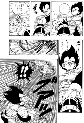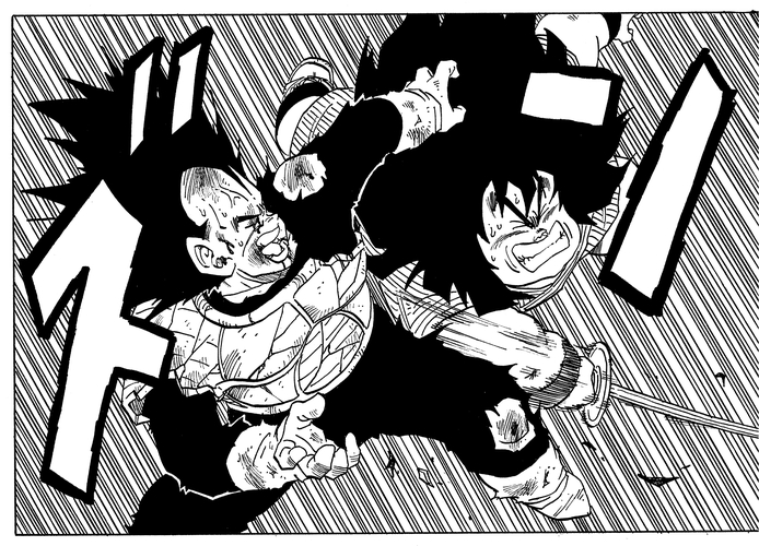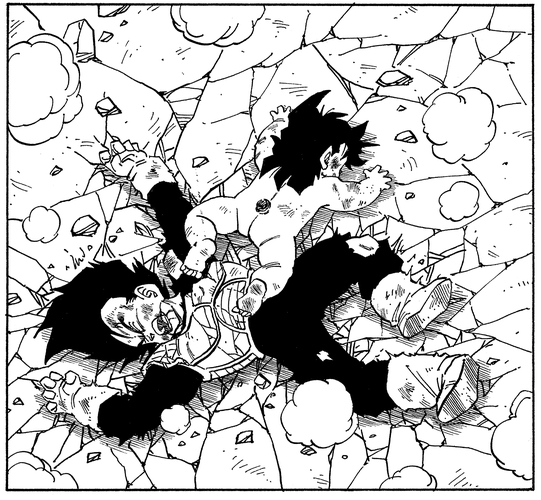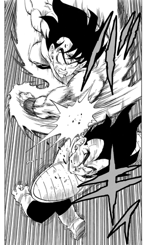 Goku élimine Nappa, et Vegeta prend sa place en tant qu'adversaire de Goku.