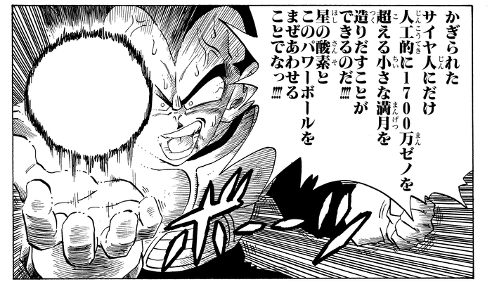 Fou de rage, Vegeta utilise sa Power Ball pour créer une petite lune artificielle. Cela le transforme en Great Ape et il lance une attaque dévastatrice contre Goku.