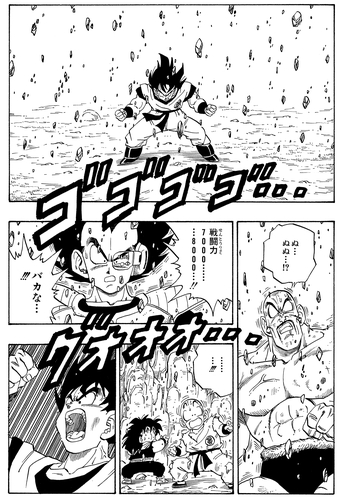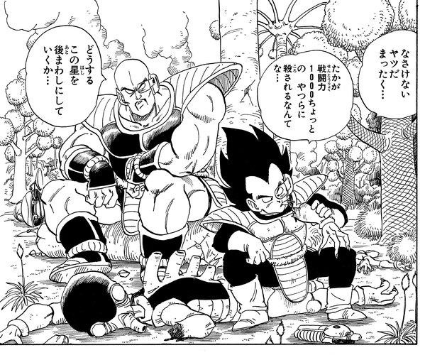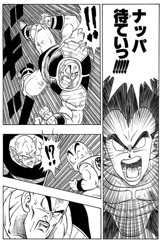 Trois heures s'écoulent sans que Goku n'apparaisse, et Nappa reprend son assaut. Peu après la défaite de Piccolo, Goku arrive, stupéfiant Nappa et Vegeta grâce à la mesure de son Power Level .