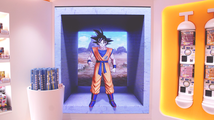 Premier élément à ne pas manquer : cet écran situé au fond du magasin. Vous pourrez y profiter de contenu original de DRAGON BALL STORE TOKYO, ainsi que des génériques d'ouverture et de fin cultes ! C'est comme si Goku apparaissait devant vous !