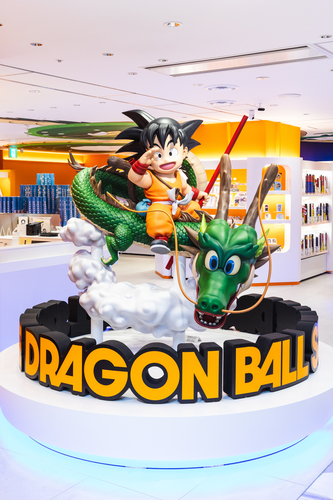 DRAGON BALL STORE TOKYO a pour mascotte la statue « Goku & Dragon », une reproduction tridimensionnelle de l'illustration de couverture emblématique du tout premier volume du manga Dragon Ball !