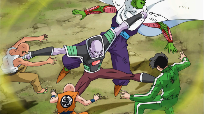 Bien que brièvement dominés par l'attaque de Frieza, Goku et Vegeta arrivent à temps pour Gohan, qui en a besoin.