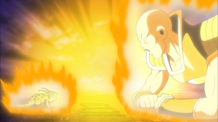 Ginyu, furieux, les réprimande : « Vous autres Saiyans, vous prenez ça à la légère, mais pour moi, ce furent des années de souffrance ! De tous les corps possibles, vous m'avez enfermé dans une grenouille ? » Vegeta rétorque froidement : « Au moins, si tu étais resté sur ton nénuphar, tu n'aurais pas eu à mourir », et il lance un Kidan à bout portant sur Ginyu , l'anéantissant instantanément.