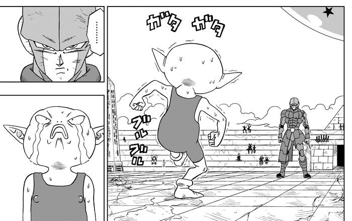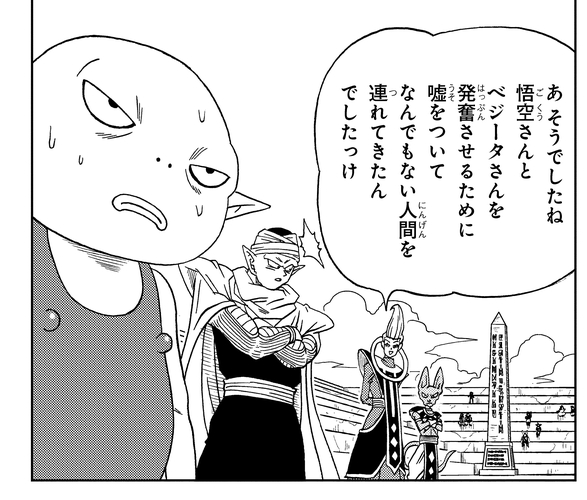 …du moins, c’est ce que Beerus raconte à Goku et Vegeta pour les motiver. En réalité, Monaka est un humanoïde d’une banalité affligeante.