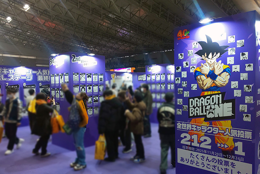 Les participants ont pu consulter de plus près les résultats du vote pour DRAGON BALL THE ONE, le sondage mondial de popularité des personnages qui s'est tenu à partir du 20 novembre 2025. Les pochettes plastiques originales que nous avons distribuées ont remporté un vif succès ! De plus, le dessin de Goku signé par Toyotarou pour l'annonce des résultats du vote sur YouTube était également exposé !