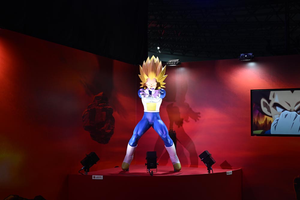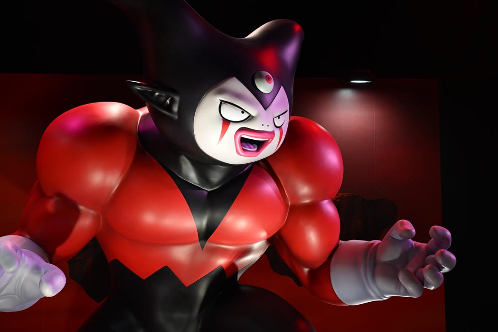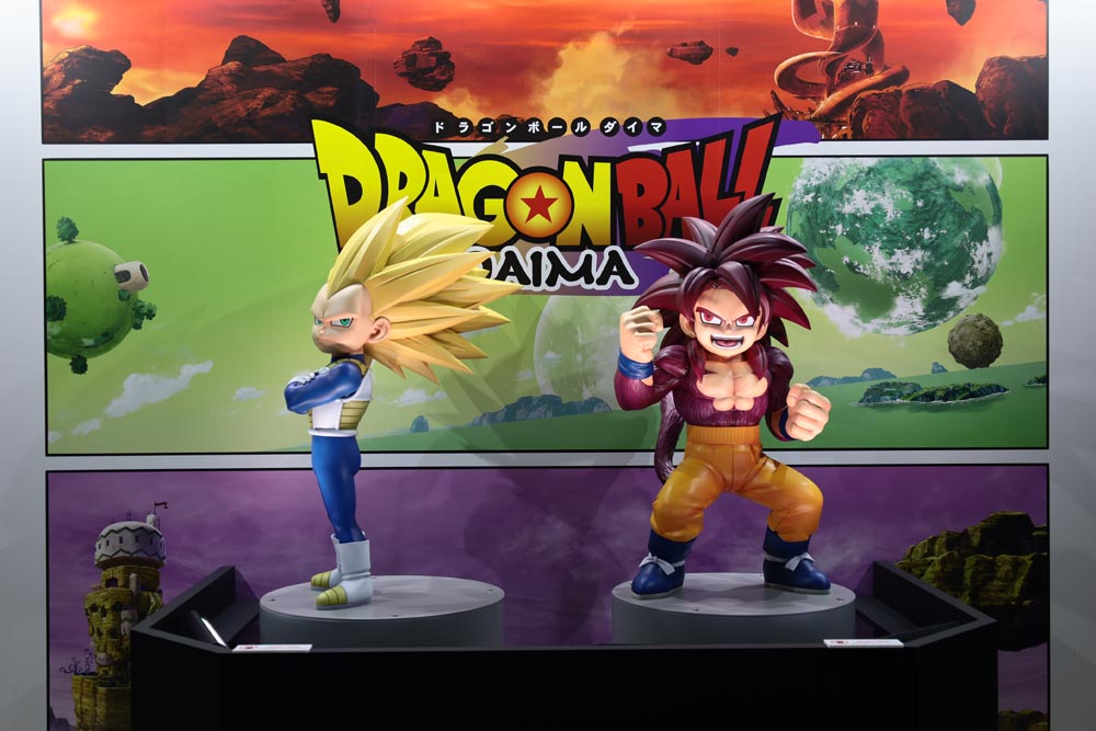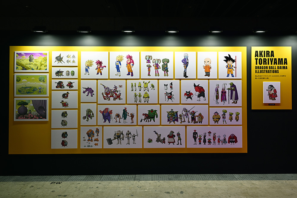 D'immenses socles en acrylique de Goku, utilisés pour la promotion de l'événement Genkidamatsuri, étaient exposés dans l'espace Dragon Ball Moments ! À travers la bouche de Warp-sama se trouvaient des statues tirées de l'anime Dragon Ball DAIMA , ainsi que des illustrations d' Akira Toriyama, dont certaines étaient dévoilées pour la toute première fois !