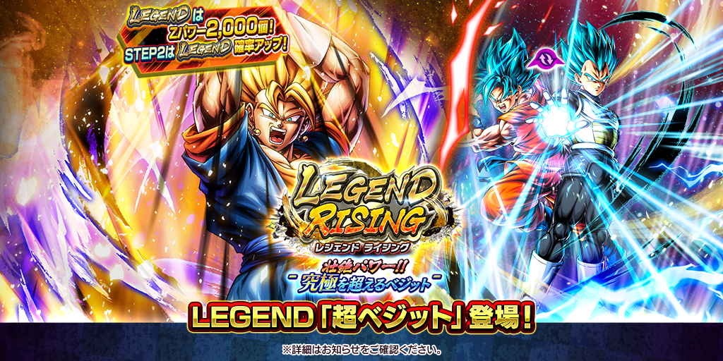 Pour célébrer l'arrivée de Super Vegito LÉGENDE dans le combat, premier personnage de rareté LÉGENDE, l'événement « LÉGENDE QUI S'ÉCLATE - PUISSANCE SUBLIME ! UN VEGITO AU-DELÀ DE L'ULTIME ! » est lancé ! Tout comme les personnages ULTRA, les personnages LÉGENDE seront disponibles avec 2 000 Z Power !