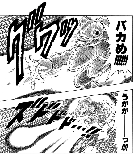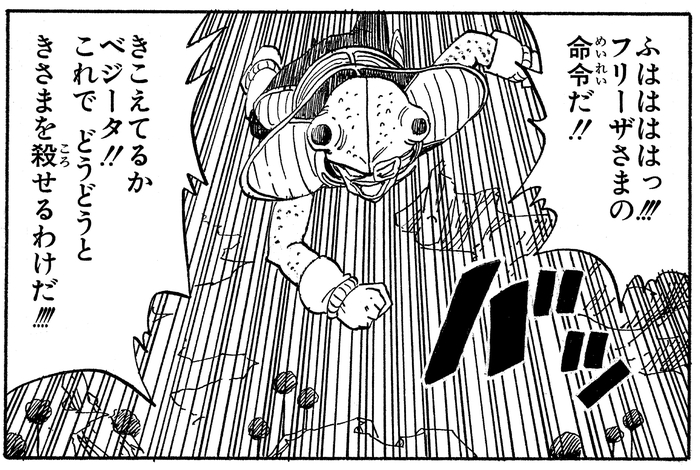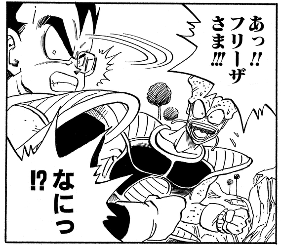 Lorsque Vegeta découvre la supercherie de Kiwi, ce Kiwi le prend par surprise en s'écriant : « Oh ! Maître Frieza! » et en lui lançant une succession de féroces rafales d'énergie.