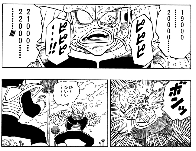 Kiwi confronte ensuite Vegeta, qui l'attendait, et affirme avec arrogance : « Ma Power Level est bien supérieure à la tienne ! » Cependant, Vegeta a appris à maîtriser sa Power Level grâce à son expérience de mort imminente sur Terre. Il augmente alors rapidement sa Power Level, rendant le Scouter de Kiwi indétectable et provoquant son explosion.