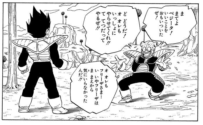 Terrifié, Kiwi tente de convaincre Vegeta de faire équipe avec lui pour vaincre Frieza .