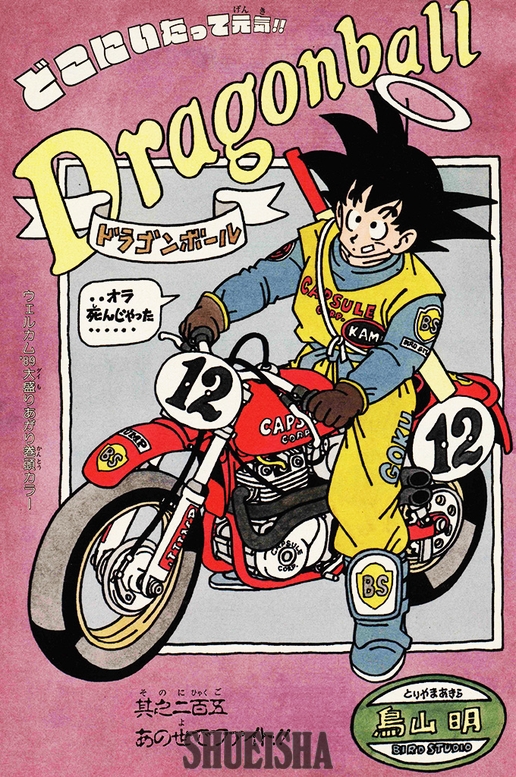 Cette page de titre met en scène Goku, qui semble de bonne humeur malgré sa mort lors de son combat contre Raditz dans le numéro précédent ! Son air amusé, ne trahissant aucune inquiétude quant à son sort, ainsi que le design inhabituel, ont permis d'apaiser complètement les inquiétudes des lecteurs.