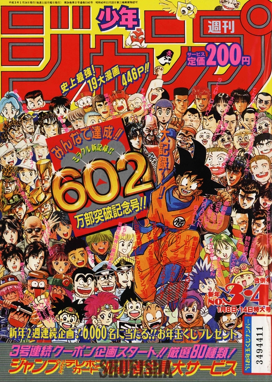 La couverture du numéro spécial célébrant le plus de 6,02 millions d'exemplaires du Weekly Shonen Jump mettait en scène une pléiade de personnages issus de 19 mangas à succès. Goku occupait le devant de la scène, levant le bras avec énergie. En y regardant de plus près, on pouvait également apercevoir Gohan, Krillin et Bulma se précipitant pour rejoindre les festivités, vêtus des tenues qu'ils portaient sur la Planet Namek. Ce numéro marquait également le sixième anniversaire de Dragon Ball et proposait un double épisode époustouflant du combat contre Frieza.