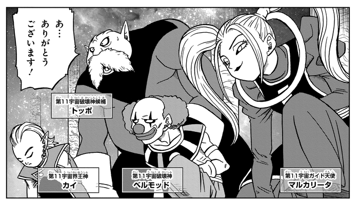 Elle accompagne Khai, le Supreme Kai de Universe 11, et Belmod au Palace de Zen-Oh pour assister à un match d'exhibition opposant tous les Dieux de la Destruction .