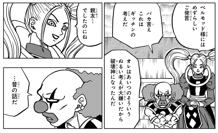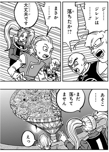 Alors que d'autres univers sont anéantis les uns après les autres, Goku et Vegeta font équipe pour affronter Jiren, qui a accédé au tour suivant. Lorsque Belmod cite le maître de Jiren, Gicchin, en déplorant : « Il ne saura jamais quand les choses tourneront mal et qu'il devra compter sur les autres », Marcarita fait allusion à leur passé secret en soulignant : « Et pourtant, vous étiez amis. »