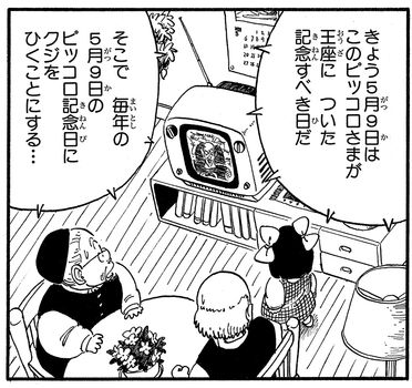 Le Jour de Commémoration du Roi Piccolo est apparu dans Jump Comics "Dragon Ball" Tale 153 comme une "fête" spéciale établie par le Great Demon King Piccolo lui-même quand il a conquis le King Castle et a pris le trône.