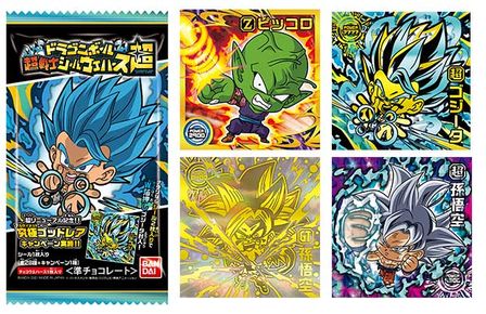 La série "Super Warrior Stickers" présente des éléments déformés,chibi-arrangements de style de divers personnages de Dragon Ball . Le premier ensemble de la série "Dragon Ball Super Warrior Sticker Wafers" depuis sa mise à niveau de "Z" à "Super" sera disponible au Japon à partir du 10 mai.
