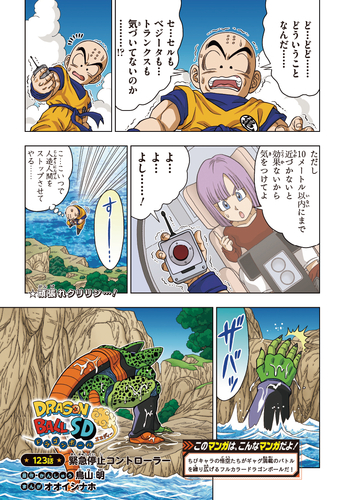 Pendant que Vegeta affronte Cell, Krillin s'approche discrètement de Android 18 , la Androids' Emergency Suspension Remote à la main. Il tente de désactiver Android 18 pour empêcher Cell d'atteindre sa Perfect Form, mais Krillin casse la télécommande ! Cell aperçoit alors Android 18… ! Ne manquez pas ce nouveau chapitre de Dragon Ball SD, riche en combats intenses et en gags hilarants !