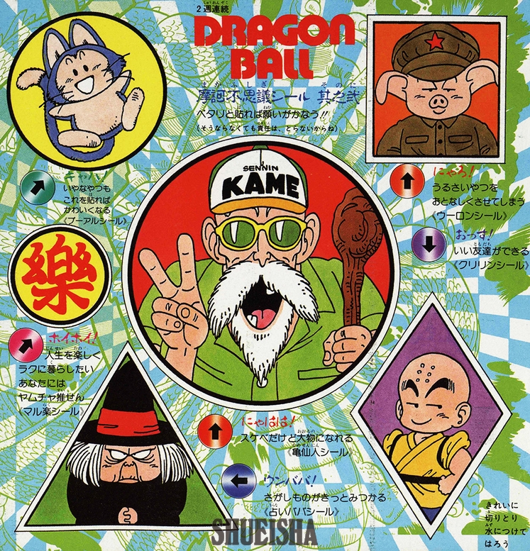 Voici un autocollant bonus activé par l'eau, inclus dans ce numéro du Weekly Shonen Jump. Accompagné du slogan « Collez-les sur une surface pour exaucer votre vœu ! », le vœu associé à chaque personnage représenté lui va comme un gant. Avec des illustrations et le caractère « réconfort » spécialement créés pour cet autocollant, c'est un objet somptueux, trop beau pour être utilisé.