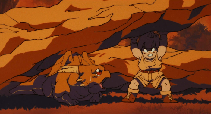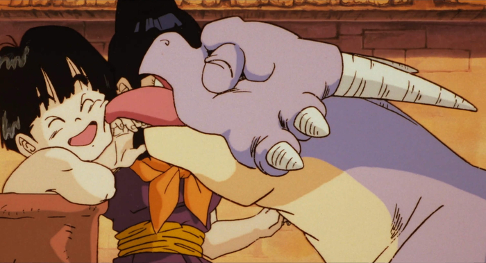 Après avoir failli se faire mordre en essayant de lui parler, Oolong s'emporte : « C'est génial… Il est comme Piccolo! Tout pour Gohan, rien pour moi ! »