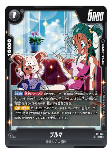 La carte bonus Monde Fusion de ce numéro est une carte de combat « Bulma» noire ! Elle se combine parfaitement avec la carte Leader « Bulma» du booster MANGA BOOSTER 01 [SB01] et est en plus peu coûteuse et facile à jouer ! Ce numéro présente également des exemples de decks pour vous aider à tirer le meilleur parti de cette carte bonus ! N'oubliez pas de consulter les compétences [Activer le combat] et [Quand KO] qui facilitent grandement la création de combos !