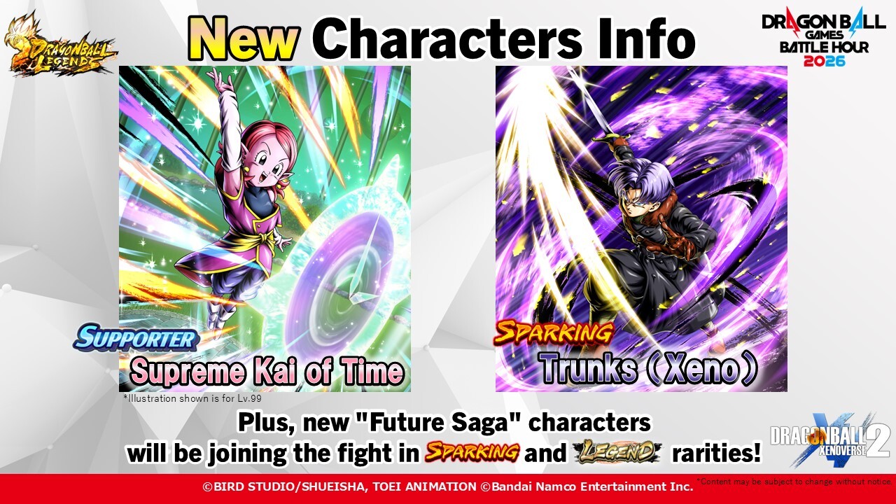 Une campagne collaborative entre DRAGON BALL LEGENDS et DRAGON BALL Z XENOVERSE 2 débutera le 28 avril ! Le Supreme Kai of Time et Trunks SPARKING (Xeno) rejoindront LEGENDS ! Ce n'est pas tout ! Un autre personnage SPARKING et un personnage LEGEND de la série FUTURE SAGA sont également prévus ! D'autres événements liés à XENOVERSE sont au programme, alors préparez-vous !