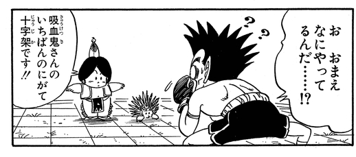 Upa se bat ensuite contre Draculaman aux côtés de Pual au Uranai Baba's Palace' Pual Baba. Leur adversaire était peut-être un puissant vampire, mais ils parviennent à remporter une victoire incroyable en utilisant une haleine d'ail puante et en posant comme des croix !