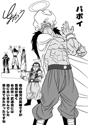 Dans le manga Dragon Ball , Kaio South a remarqué en regardant Goku s'entraîner en vue du Tenkaichi Budokai que Papoi pouvait "manger ce type pour le petit-déjeuner" !