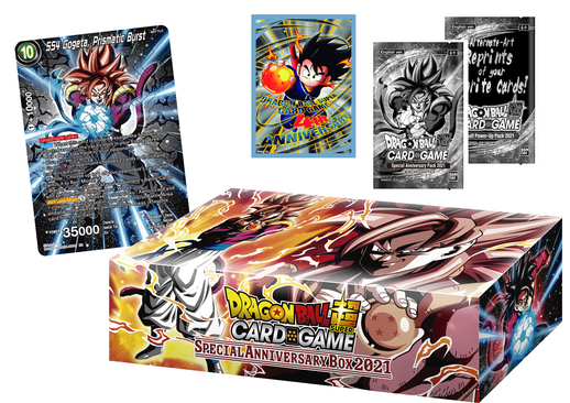 Le Dragon Ball Super Card Game, principalement disponible en Europe et en Amérique du Nord, a fêté ses 4 ans ! Pour fêter ça, un coffret spécial anniversaire appelé «Dragon Ball Super Card Game Special Anniversary Box 2021 » sortira début septembre !