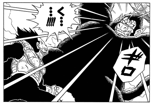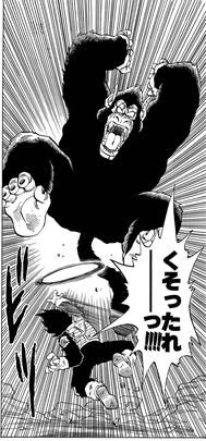 Au milieu de leur combat, la queue de Gohan s'est soudainement régénérée, le faisant réagir à la mini-lune artificielle de Vegeta et se transformer en Great Ape!