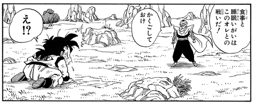 Avec Goku donnant sa propre vie pour arrêter Raditz et se rendre dans l' Another World, Gohan fut laissé entre les mains improbables de Piccolo, qui continuerait à le former en vue de l'arrivée de deux autres envahisseurs Saiyan dans un an.