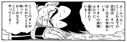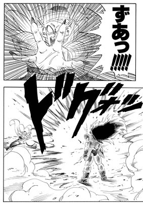 Voyant cela, Gohan éclate de rage et pose un tacle net sur son oncle déchaîné ! Goku saisit le moment de faiblesse de Raditz et s'empare de lui. Raditz supplie que sa vie soit épargnée, mais les négociations se terminent rapidement alors que Piccolo lance un dernier Makankosappo qui déchire un trou à travers lui et Goku.